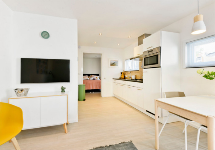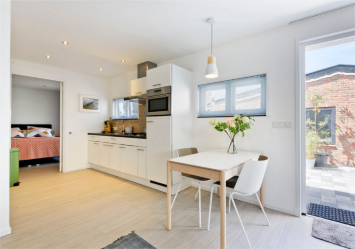Das ebenerdige Apartment befindet sich am Ende unseres Gartens und eine eigene Terrasse mit Gartenmöbeln. Um das Apartment zu erreichen, gehen Sie durch unseren Garten. Es ist mit einer modernen, offenen Küche mit Kombi-Mikrowelle, Kühlschrank und Nespresso-Kaffeemaschine (oder Filterkaffeemachine) ausgestattet. Im Wohnzimmer befindet sich ein Flachbild-TV mit zusätzlichen deutschen Sendern. Das Schlafzimmer verfügt über einen großen Schrank und ein Boxspringbett (1,60 x 2,00) mit einer Zweipersonendecke. Bettwäsche ist einbegriffen. Im Badezimmer befindet sich eine Dusche und Handtücher (1 kleines und 1 großes Handtuch und 1 Waschlappen pro Person) sind im Preis inbegriffen.